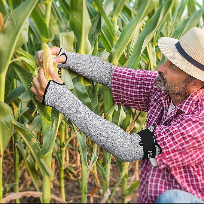 • Arm guard sleeves made of high-performance polyethylene (HPPE), fiberglass, and synthetic fibers make them cut-resistance and wear-resistance. (PLEASE NOTE THAT IT'S NOT PUNCTURE PROOF!)