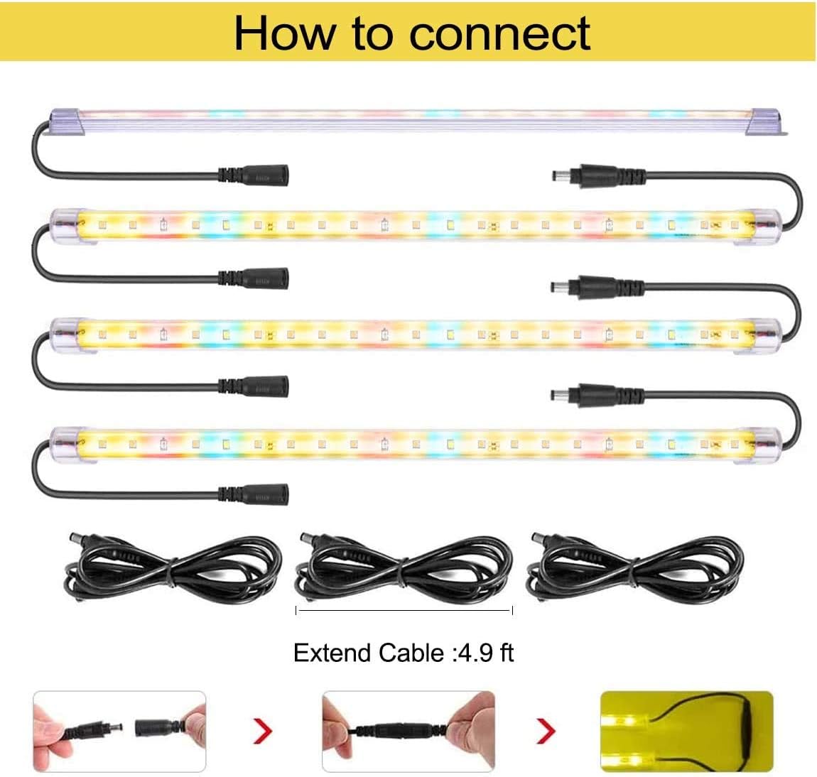 • 【Easy to install】 This T5 LED grow light strips easy for you to finish your setup with the supplied super strong self-adhesive pads, Easy to install on your cabinet, plant shelf, wall, and growing system. Zip ties can help you fix it on the shelf, With 5pcs extension cables, which enlarge the area of the effective lighting.