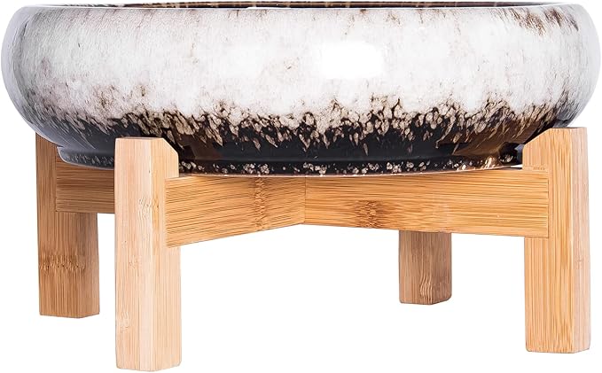 ARTKETTY Succulent Pots - 10 Inch Large Ceramic Bonsai Pots with Drainage Stand for Indoor Plants Shallow Planters Decorative Cactus Flower Plant Container Bowl