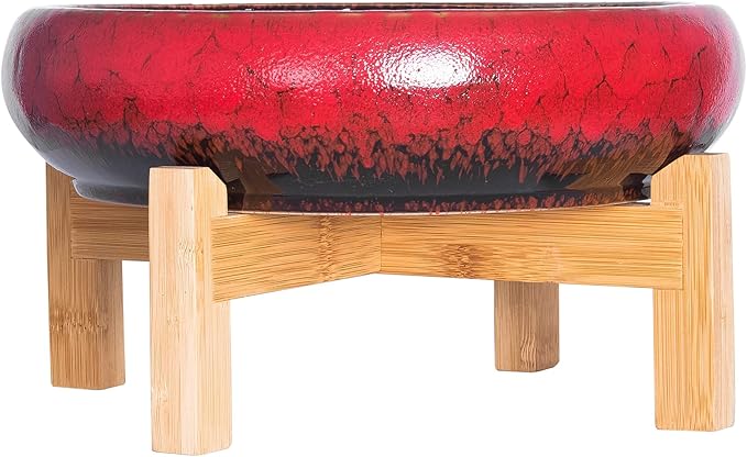 ARTKETTY Succulent Pots - 10 Inch Ceramic Bonsai Pots with Drainage Stand, Large Shallow Planters for Indoor Plants Decorative Garden Cactus Flower Plant Container Bowl