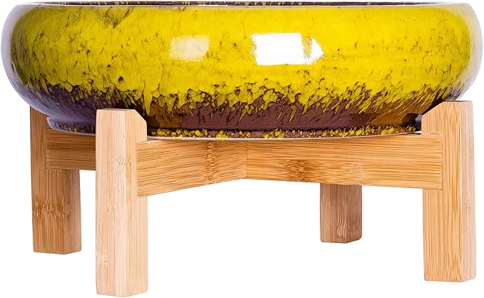 ARTKETTY Succulent Pots - 10 Inch Ceramic Bonsai Pots with Drainage Stand, Large Shallow Planters for Indoor Plants Glazed Cactus Flower Planter Container Bowl