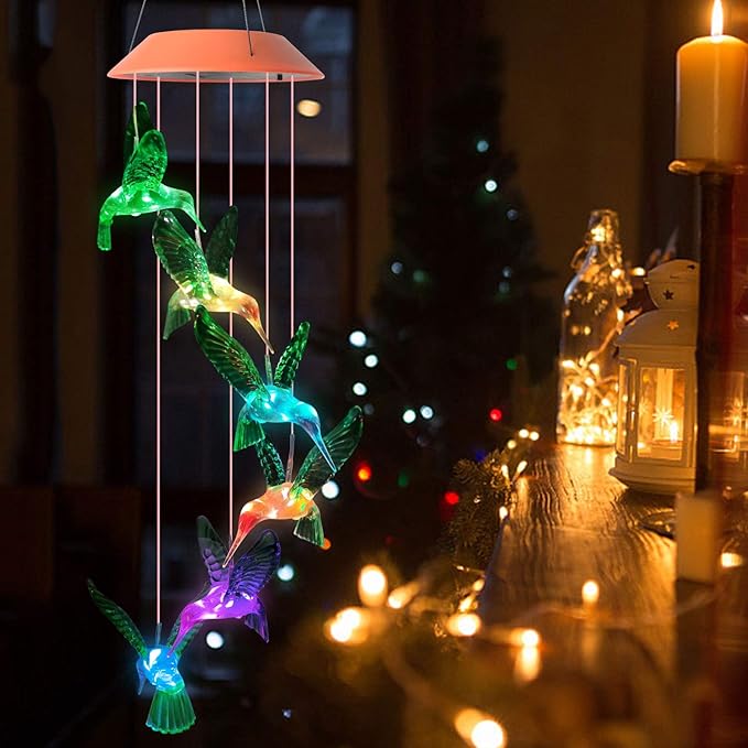 JOBOSI Hummingbird Solar Decor Gifts, Hummingbird Wind Chimes, Gifts for Mom, Women, Grandma, Garden Lawn Yard Decor,