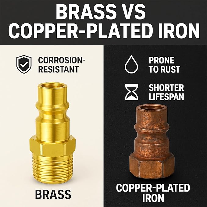 • Premium Materials: TL TOOLEGIN air hose quick connect fittings are made of solid brass, boasting excellent corrosion resistance, leak-proof durability, and an extended lifespan, ensuring exceptional reliability even in heavy-duty applications.