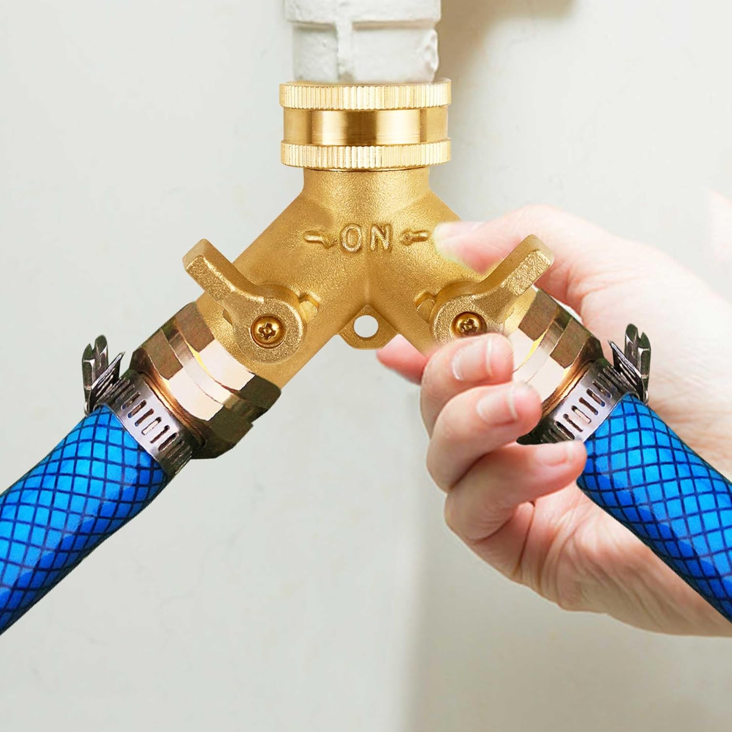 Triumpeek Brass Garden Hose Splitter, 3/4 Inch 2-Way Y Brass Hose Connector with O-ring Washers & Tape