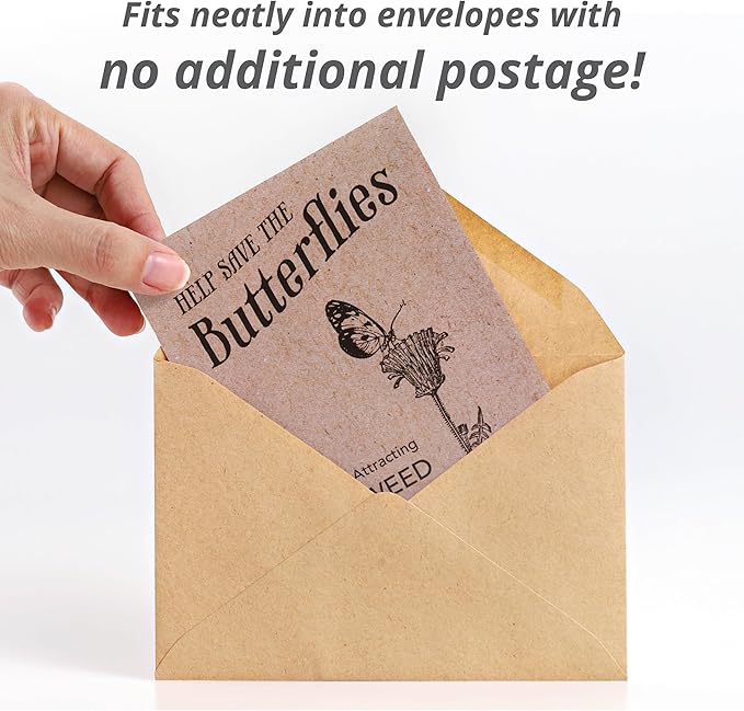 • ENVIRONMENTALLY FRIENDLY GIFT OR FAVOR: Our packet has a natural kraft-look and a simple etched design of a butterfly enjoying milkweed plants. Use it as a favor at an event or as a conscientious promotion for your business!