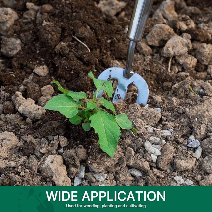 • COMFORTABLE HANDLE - The 12 inch handle provides greater reach and leverage, making it easier to reach a corner of the garden. Streamlined handle design is ergonomic. Provide excellent grip and comfort, reduce hand fatigue, prevent joint injury, make gardening process more comfortable and save effort.
