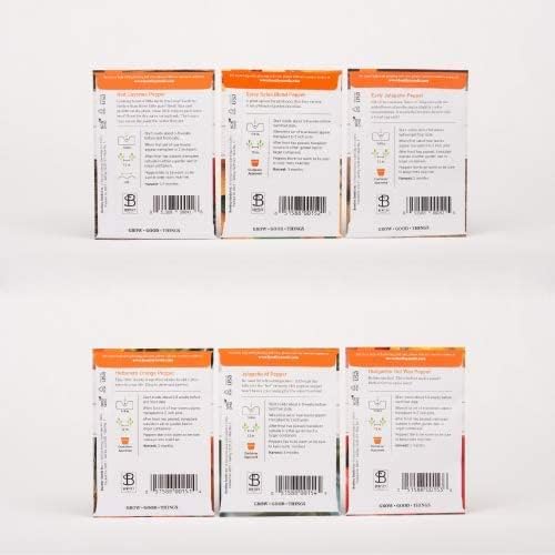• ✔ 6 ASSORTMENT OF PEPPER SEEDS: These babies pack a punch! 6 Varieties of hatch green and red chiles included-- Habanero Orange Pepper, Jalapeño M Pepper, Hungarian Hot Wax Pepper, Spicy Salsa Blend Pepper, Early Jalapeno Seed, and Long Red Cayenne Seed. Comes in eco-friendly packaging.