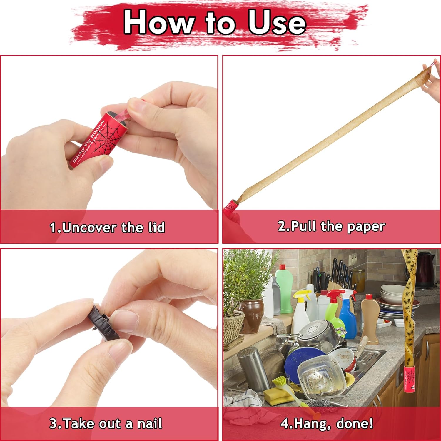 • Notice: when the weather gets hot, the gel of the fly strips melts, the red hanging string can be easily pulled off. We suggest you prepare a rope and a pair of scissors, when a small amount of sticky paper is pulled out, poke a hole in the paper with a pair of scissors and tie your rope, at last, pull the rest out cord slowly while turning tune in a counterclockwise motion. Or nail the sticky fly paper directly to the wall. It's easier to refrigerate for a while before using it!