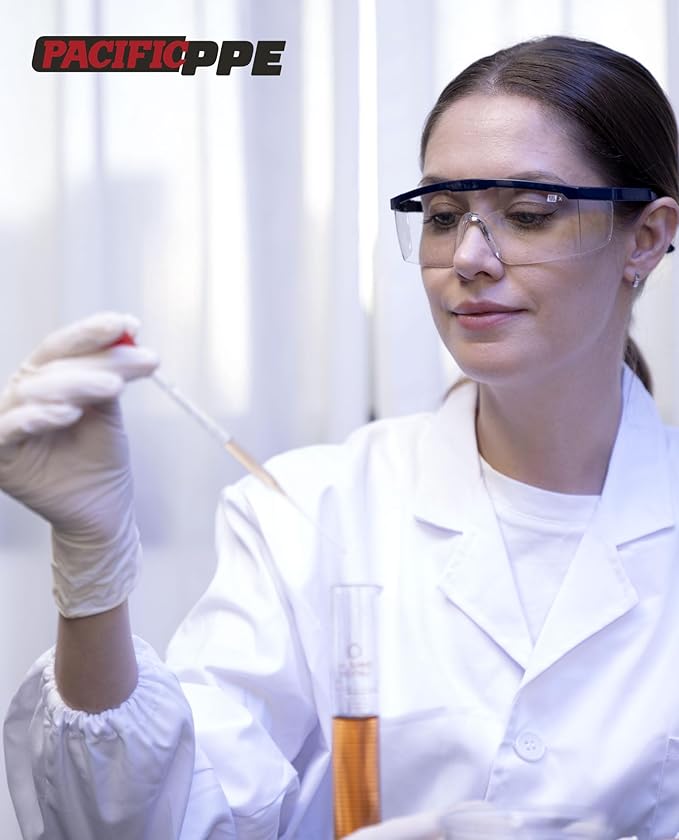 PACIFIC PPE 2 Pack Safety Glasses for Men and Women, ANSI Z87 Anti-fog Eyewear with Scratch Resistant Clear Wraparound Lenses, Adjustable Lab Goggles, UV Protection