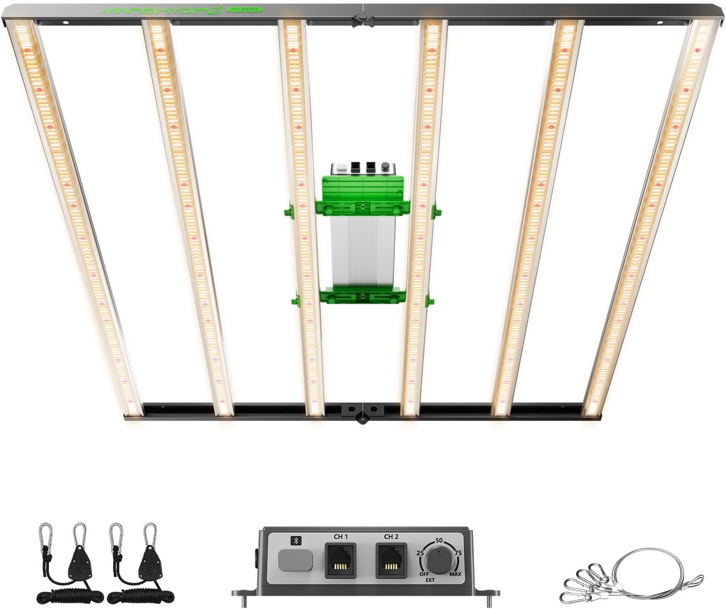 • HIGH-EFFICIENCY LED GROW LIGHT: The New Version FC-E6500 Lighting with 3144 BridgeLux Diodes, 2.8 µmol/J PPE, and 2.5g yield/730watt. smaller footprint for improved crop quality and cost-effectiveness. Ideal for personal (5x5ft) and commercial (4x4ft) use.