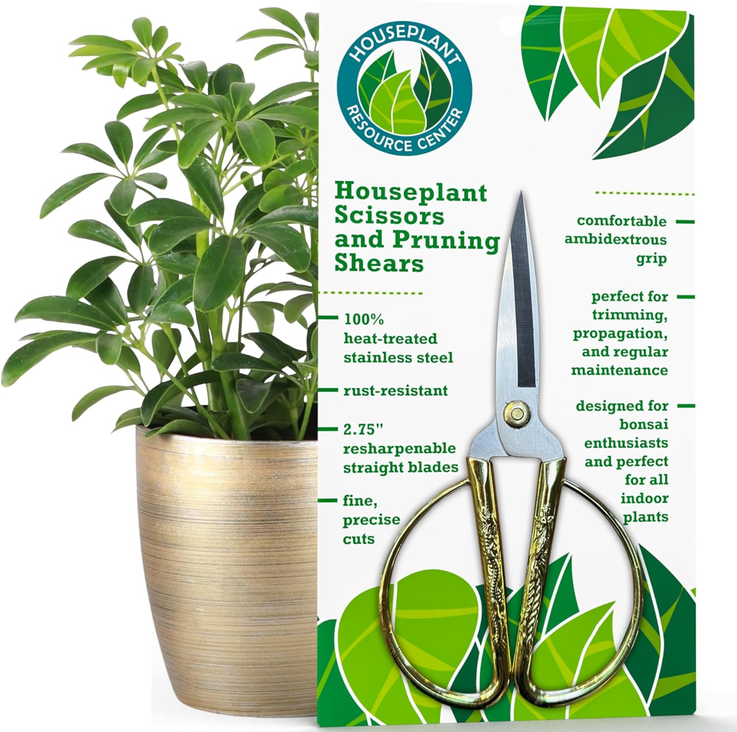 Premium Houseplant Scissors | 100% Stainless Steel, Ultra-Precise Garden Clippers for Propagation & Trimming | Rust-Resistant, Easy Clean Pruning Shears | Indoor & Outdoor | Comfortable & Ambidextrous