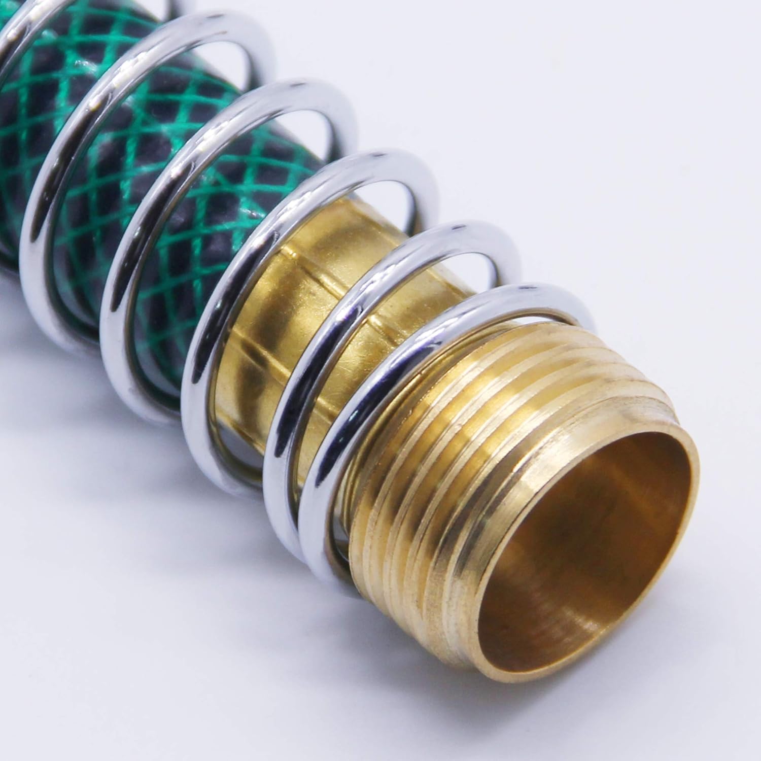 • MATERIAL: This garden hose extension is made of solid brass, stainless steel ring, PVC hose, solid and sturdy, corrosion proof and has a long service time.