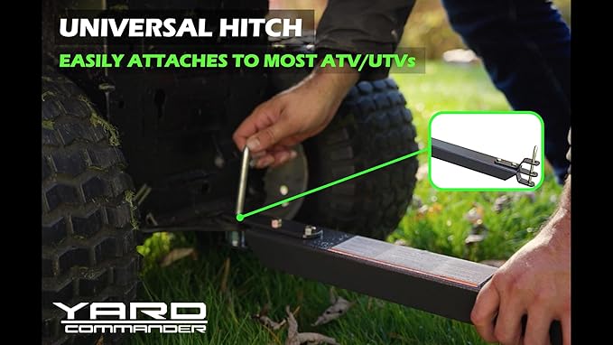 • UNIVERSAL HITCH: Attaching easily to any garden tractor or ATV/UTV, the compact and efficient design allows for easy turning in tight spaces around the house, farm, or even off-road terrain.