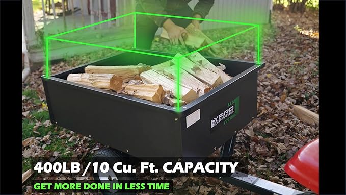 • 400 lb CAPACITY: The 10 cubic foot bed is perfect for transporting mulch, fire wood, gravel and other common landscaping materials. The length from tailgate to the trailer tongue is 58-inches and the bed itself is 40.5 inches long by 30.7 inches wide for plenty of hauling space!