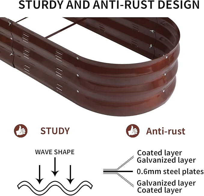 GADI Raised Garden Bed Kit for Vegetables Flower Galvanized Metal Planter Boxs Designed for Easy DIY and Cleaning Not Twist Or Rot (Brown)