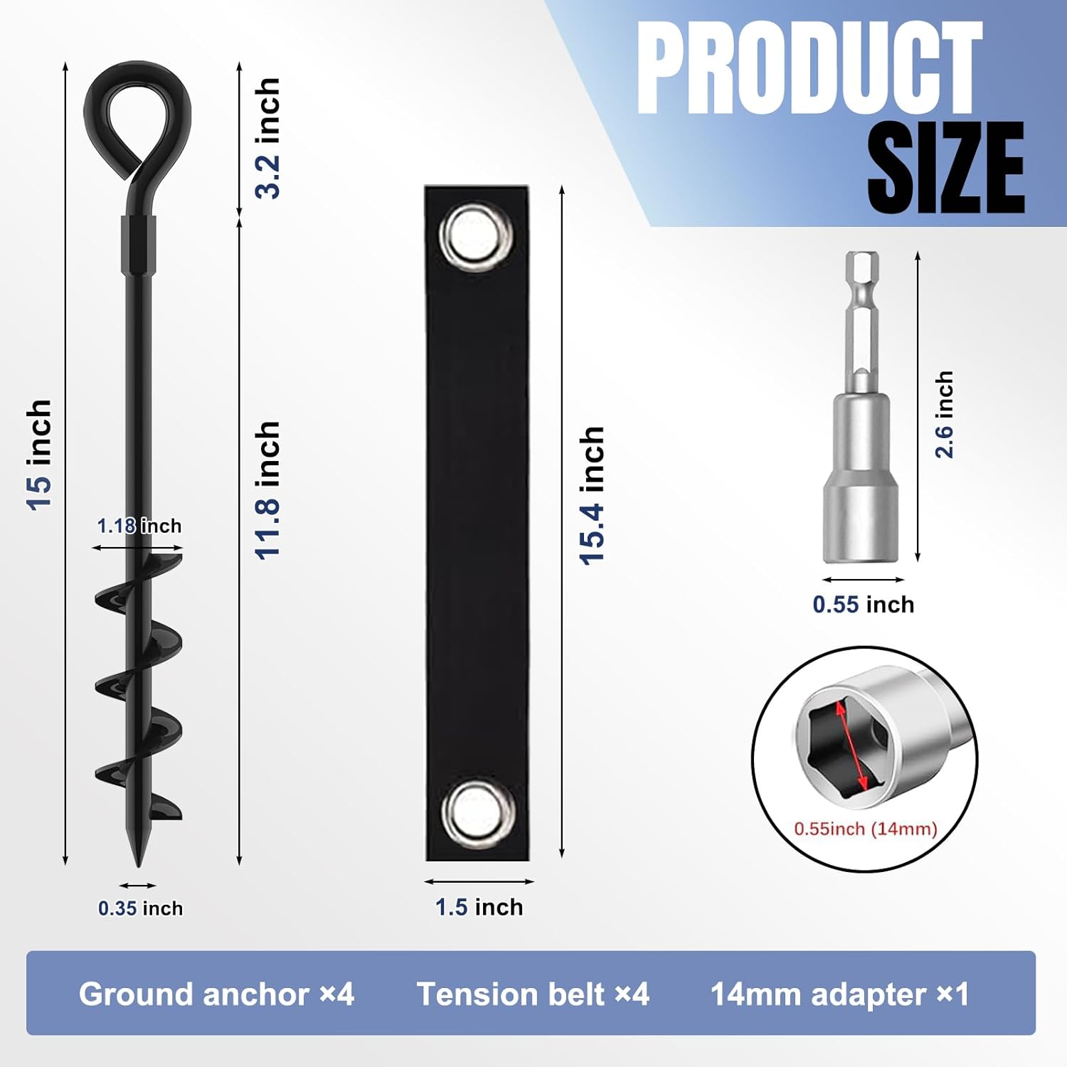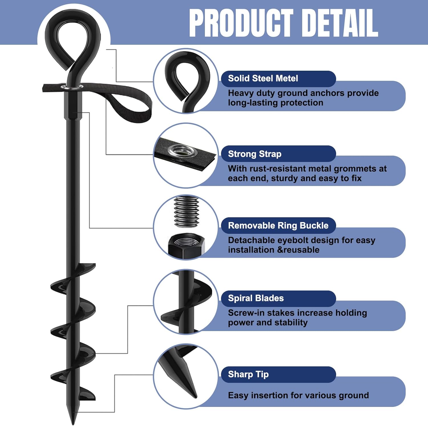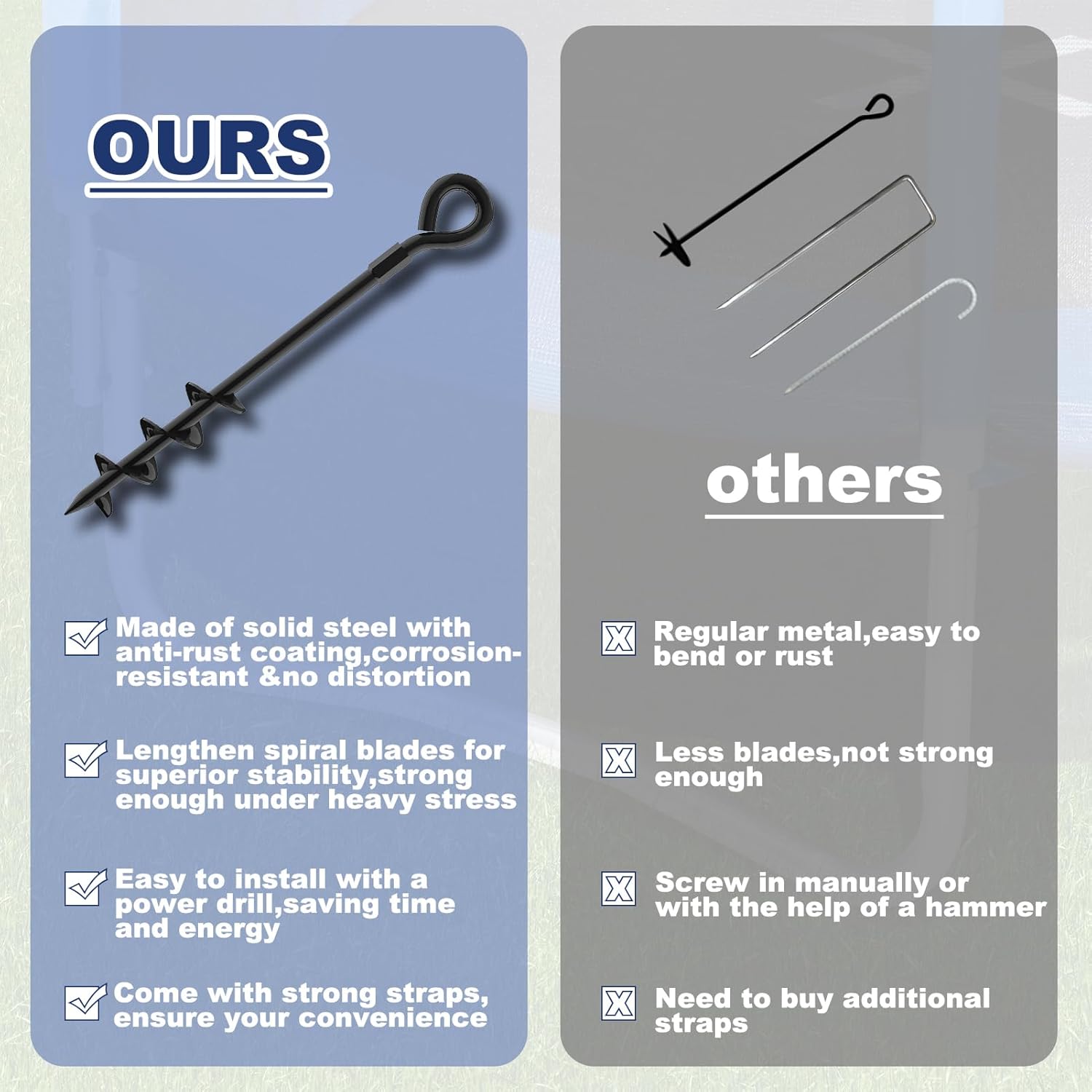 • Multiple Uses:Ideal for securing swings, slides, sheds, shelters, tents, fence posts, trampolines, bouncy castles,play tower with slide ,gazebos and trees. A must-have for stabilizing outdoor equipments.