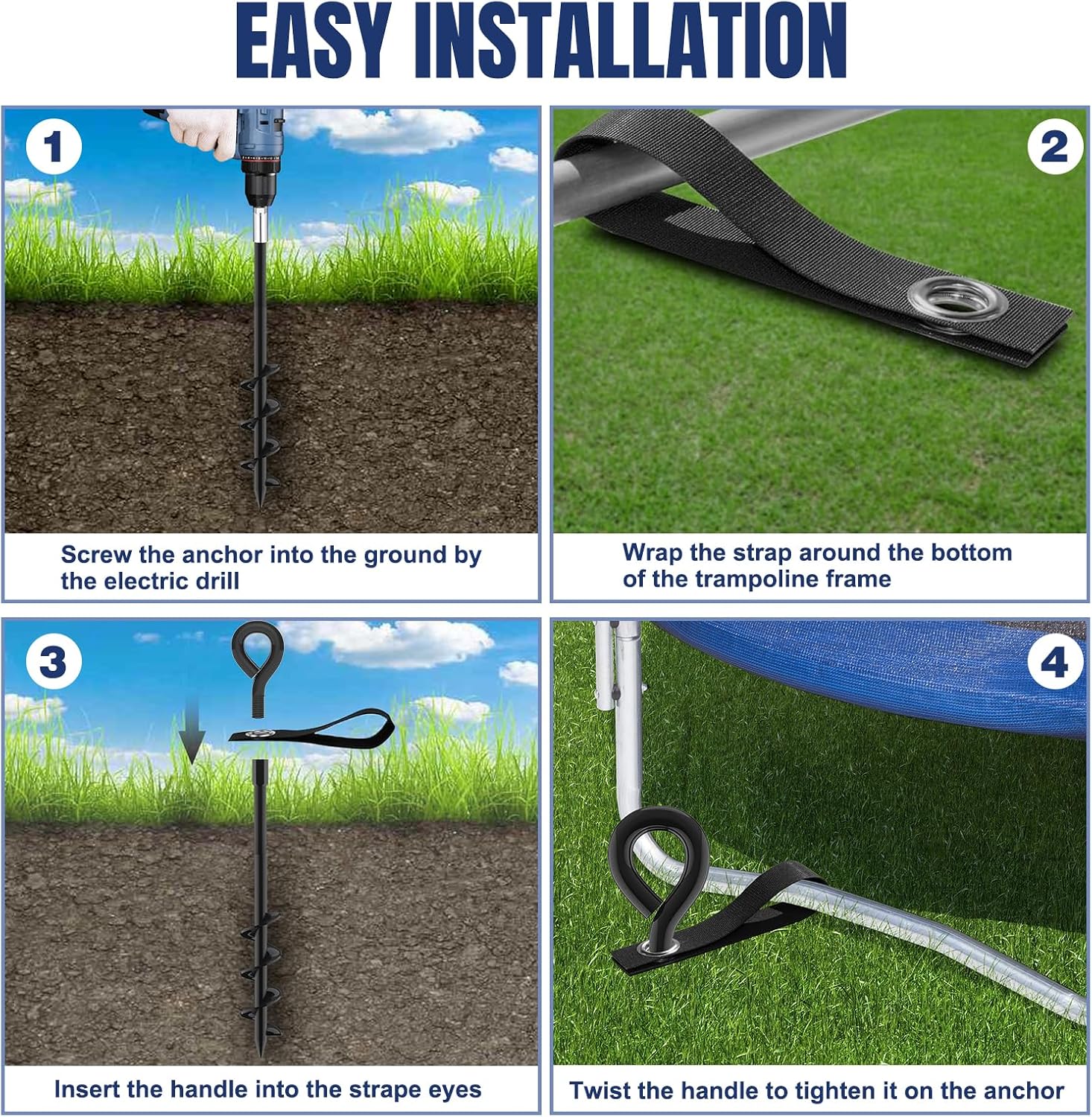 Eurmax USA Trampoline Stakes Screw in Tent Stakes Parts Heavy Duty for Canopies,4-Pack Outdoor Anchor Kit with Straps(Black)