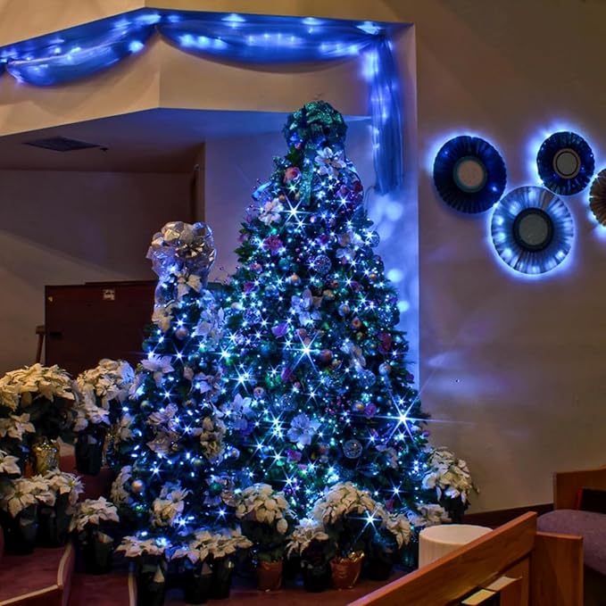 • Extra-Long Blue Christmas Lights 82FT 200 LED Plug in String Lights: Super bright with new upgraded LED bulbs. This Extendable 200 LED green wire plug in string lights have 8 lighting modes to satisfy your diverse decorative effect. Total length is 75.8ft, of which 66ft with lights.