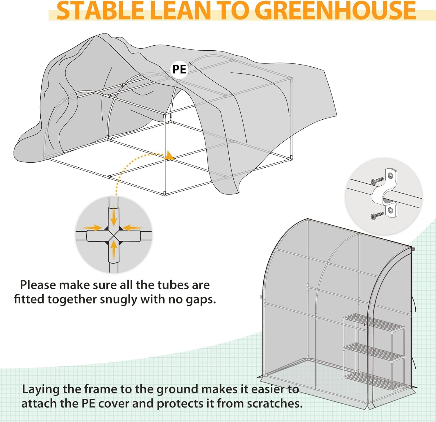 • WALL SUPPORT REQUIRED: Designed as a lean-to structure, this greenhouse must be installed against a solid, stable wall to ensure safety and durability, especially in windy or harsh weather conditions