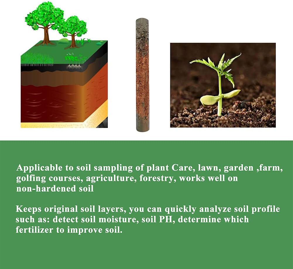 • Wide applicable soil sampler-This soil sample tool applicable to soil sampling of plant Care, lawn, garden ,farm, golfing courses, agriculture, forestry, works well on non-hardened soil.
