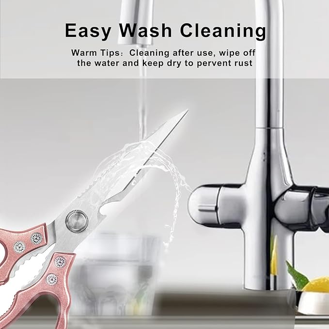Kitchen Scissors, Heavy Duty Sharp Kitchen Shears Dishwasher Safe, Kitchen Accessories Cooking Shears for Kitchen Meat Chicken Fish Poultry Herb Bread (Rose gold)