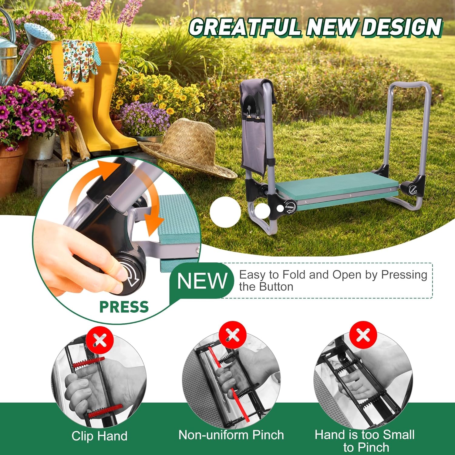 • ๐ŸŒฑGARDEN HELPER:It is friendly to gardener,can express your concern to your father, mother, elder.EVA foam padding is soft,can take the pressure off your knees.Side handles let you get up and down more easily.