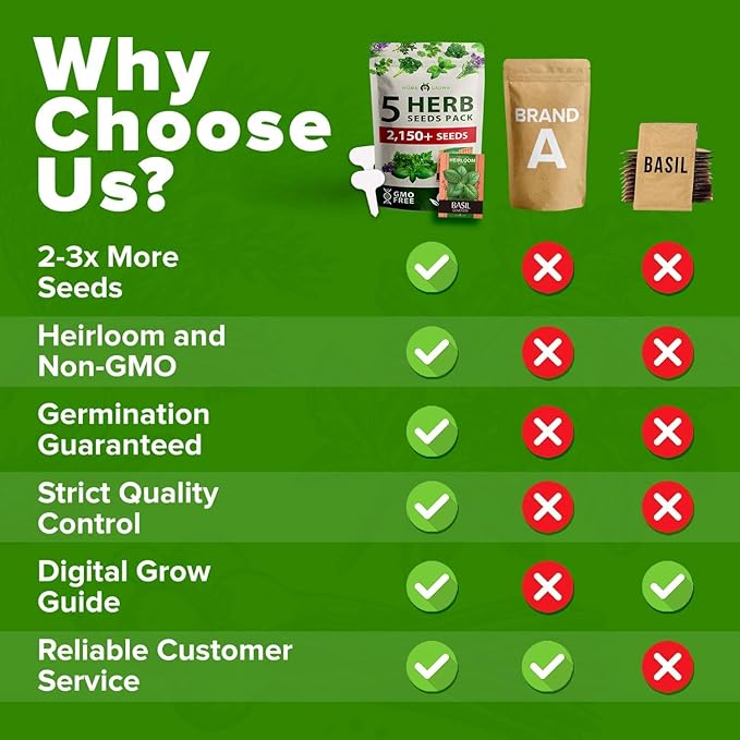 - ๐ฟ DIVERSE SELECTION OF HERB SEEDS - Our pack includes a variety of popular culinary herbs such as basil, parsley, cilantro, and more, giving you a comprehensive culinary arsenal right in your kitchen.