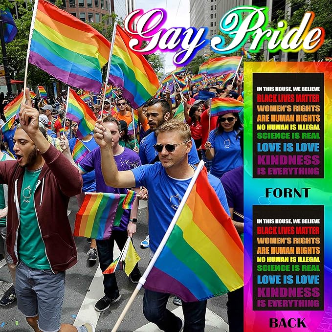 • A Great Gift: This wonderful in This House We Believe Sign flags will be perfect for hanging from your garden, adding decor to your garden, welcoming guests to your front door, or greeting family and friends at your back door. They also make wonderful gifts for your neighbour and friends! Great for everyday, holidays and special occasions! The flag is a proud supporter the LGBTQA Community. Be proud and represent your PRIDE with one of our flags!