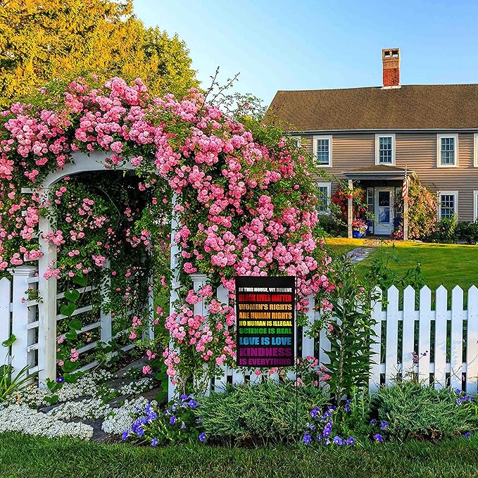 • Double Sided Garden Flag: This in This House We Believe Sign flag is lightweight and printed on both sides with our excellent printing process, making sure the image is beautiful and vibrant on both sides, and text reads correctly from both sides. Express your position and attitude. Proudly fly your flag and spread your word to the community. Perfect for any deck, patio, porch or veranda and make charming decorative statements for any backyard, lawn or garden.