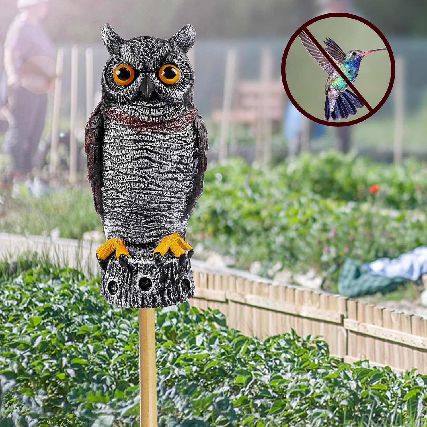 • WIDELY USE: The bird repellent owl is both practical and decorative. It can be used in farmland to protect rice and vegetables, or hung on fruit trees or vine, widely use in orchards, gardens, barns, trees. Prevent your gardens, windows, orchard, barn, crops, boats or cars from bird, make your house, yard, lawn, pond or else more beautiful.