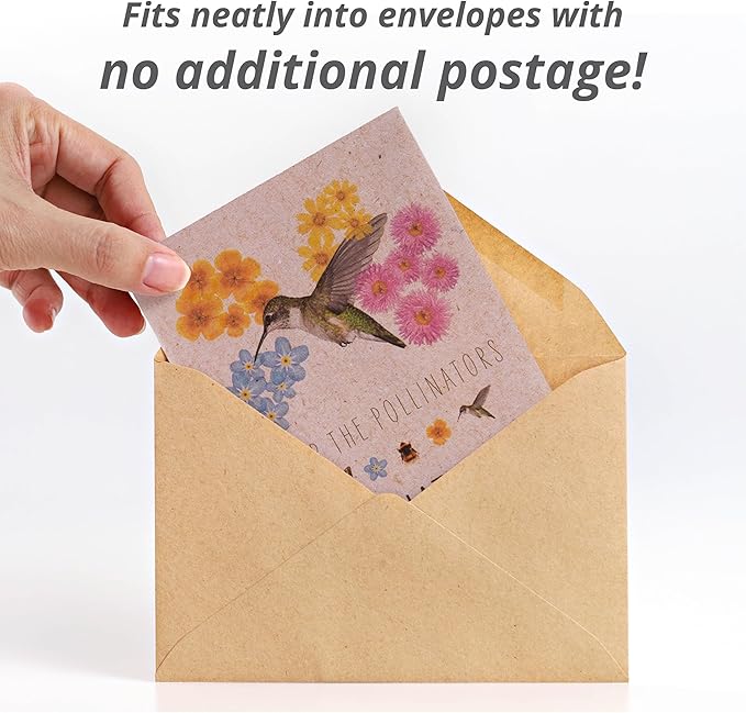 • Whimsical Floral & Hummingbird Art: Delight in the charming design of our Pollinator Mix packet featuring whimsical floral and hummingbird art. A perfect favor for eco-conscious hosts. Works great as a giveaway or party favor.