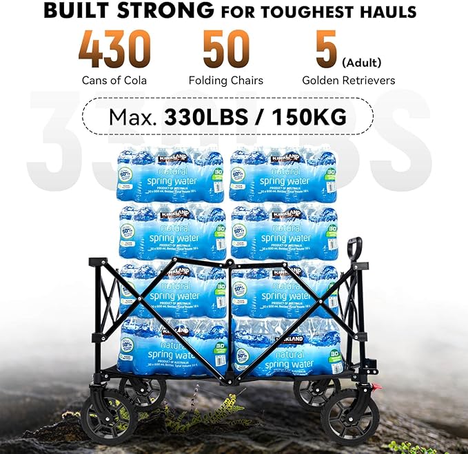 • 𝐅𝐎𝐑 𝐌𝐔𝐋𝐓𝐈𝐏𝐋𝐄 𝐎𝐂𝐂𝐀𝐒𝐈𝐎𝐍𝐒: A must-have for your daily use and outdoor adventures – Our space-saving stainless steel all terrain wagon with surprisingly large volume helps simplify the transport of heavy loads through lightly pulling, indispensable for e.g. loads of groceries or to campsites, laundry or supermarket.