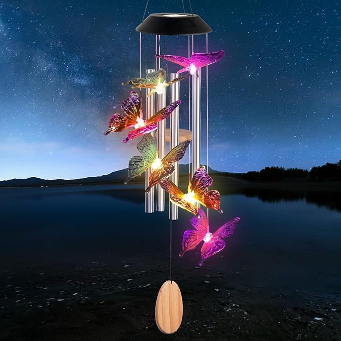 Butterfly Decorative Mobiles Gifts, Solar Butterfly Wind Chimes, Gifts for Mom, Women, Grandma, Garden Courtyard Lawn Decor, Thanksgiving Gift