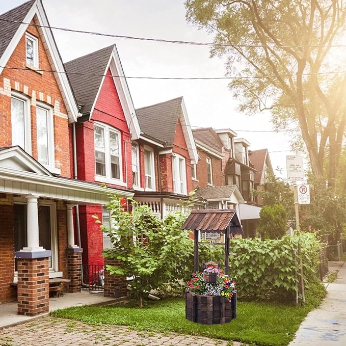 Garden Wooden Decor Rustic Wishing Well Planter Outdoor Home Décor for Patio, Upgrade Wishing Well Garden, Yard Hanging Bucket Patio Lawn Backyard Home Decor