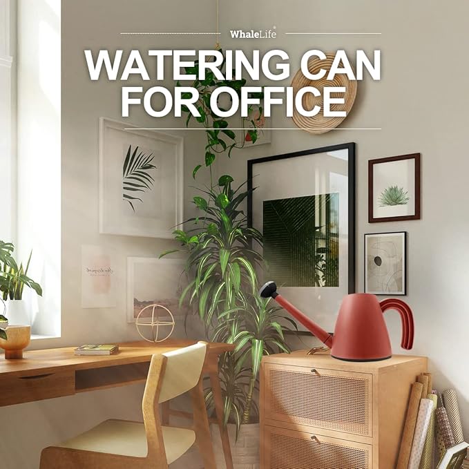 WhaleLife Indoor Watering Can for House Bonsai Plants (2.0L, Terra-Cotta Red)
