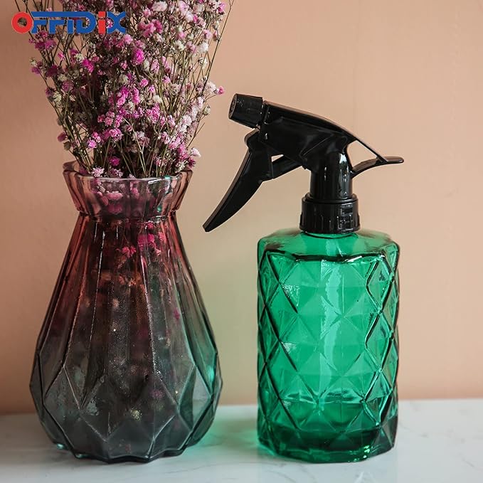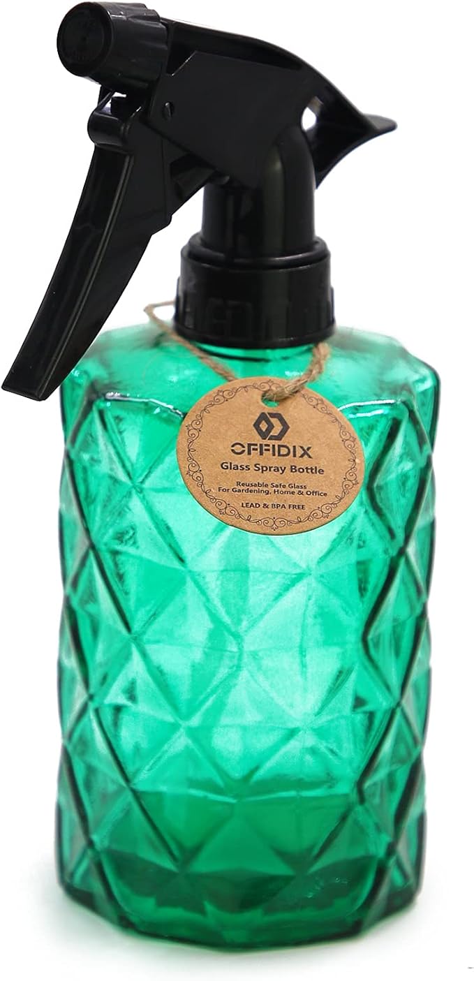OFFIDIX Fine Mist Plant Mister, Handheld Pressure Glass Spray Bottles, 0.35L/11.8oz Watering Can with Adjustable Nozzle for Outdoor Indoor Gardening and Cleaning Work (Green)