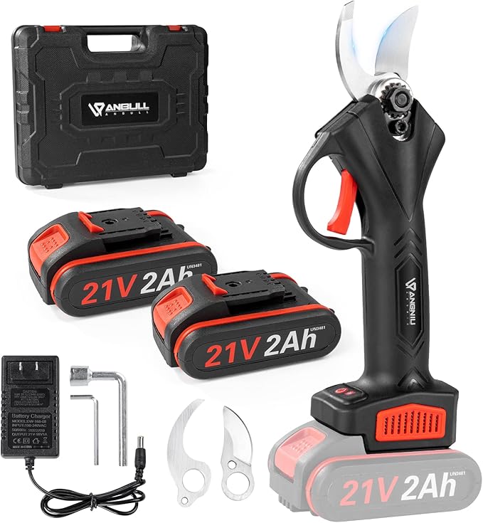 Anbull Electric Pruning Shears, Professional Cordless Electric Pruning Shears Pruner with 2PCS Backup Rechargeable 2Ah Lithium Battery Powered Tree Branch Pruner - 1.2inch (30mm) Cutting Diameter
