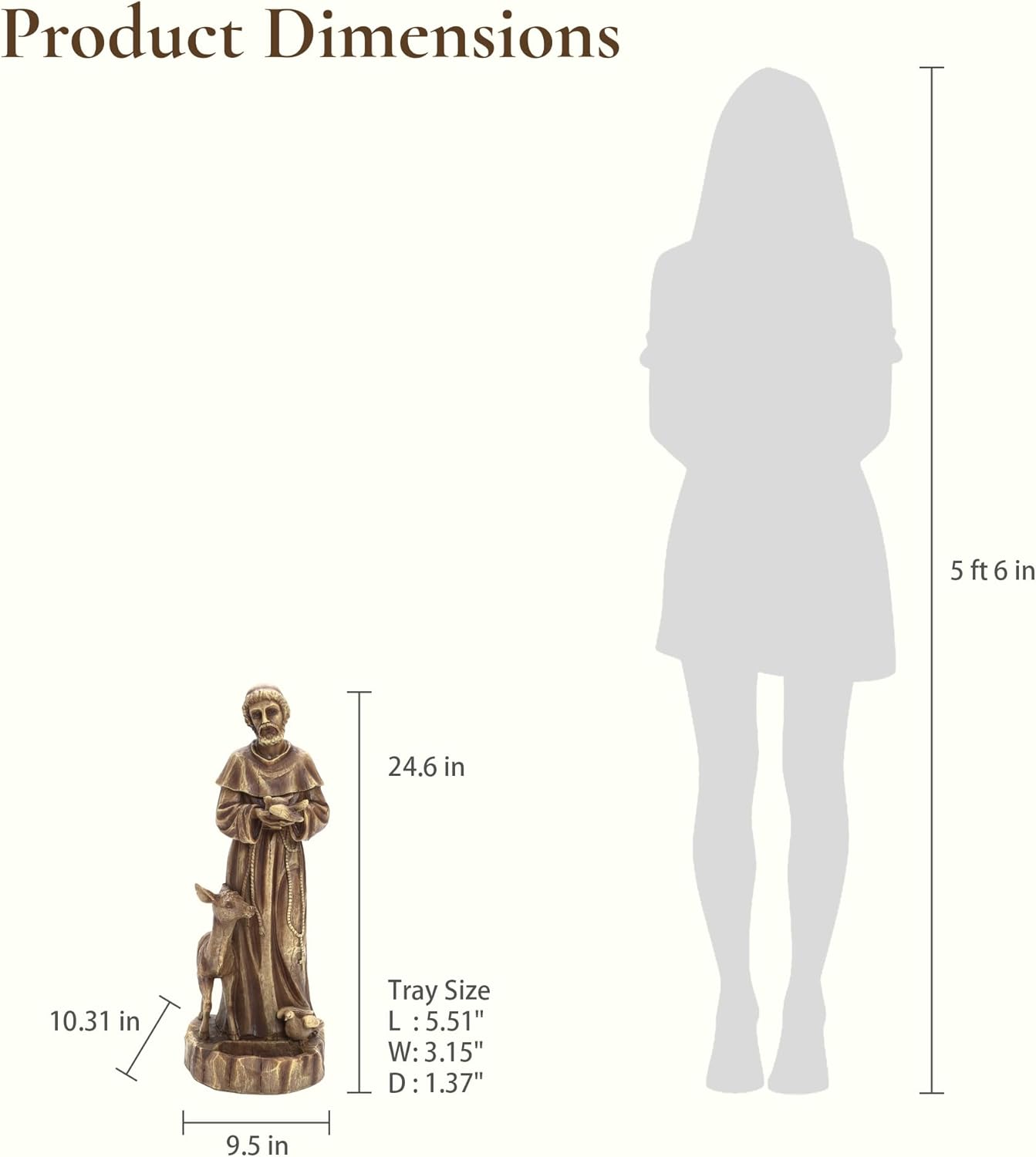 • Great Large Size: Measuring 9.5 x 10.31 x 24.63 inches, this St. Francis outdoor statue makes a grand yard statue statement in any yard or garden. The perfect blend of size and design enhances outdoor spaces with faith and style.