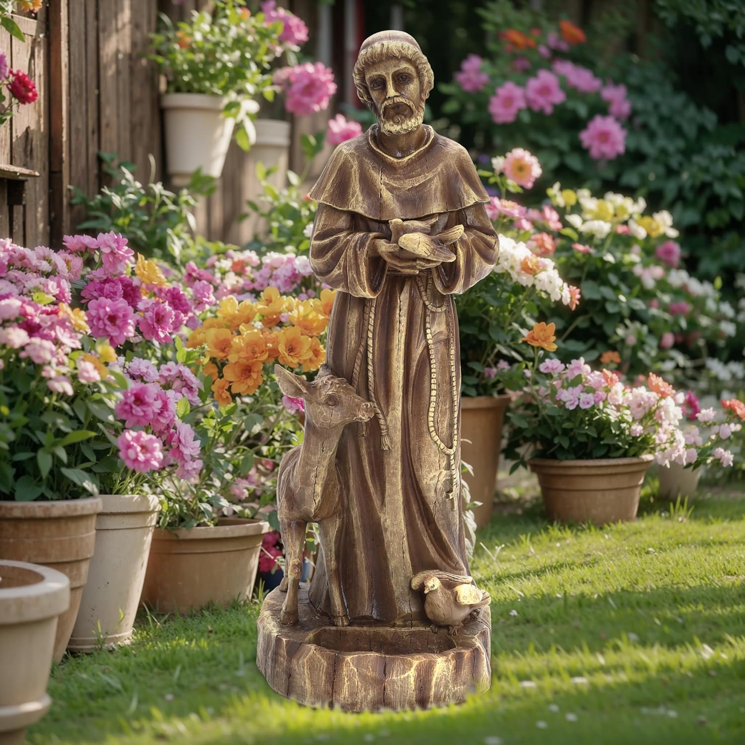 LuxenHome 25'' Saint Francis Garden Statue, Religious Garden Sculpture, Catholic St. Francis Statue for Patio, Yard, Home, Fiber Stone Decor, Outdoor Sculptures Decorations, Brown