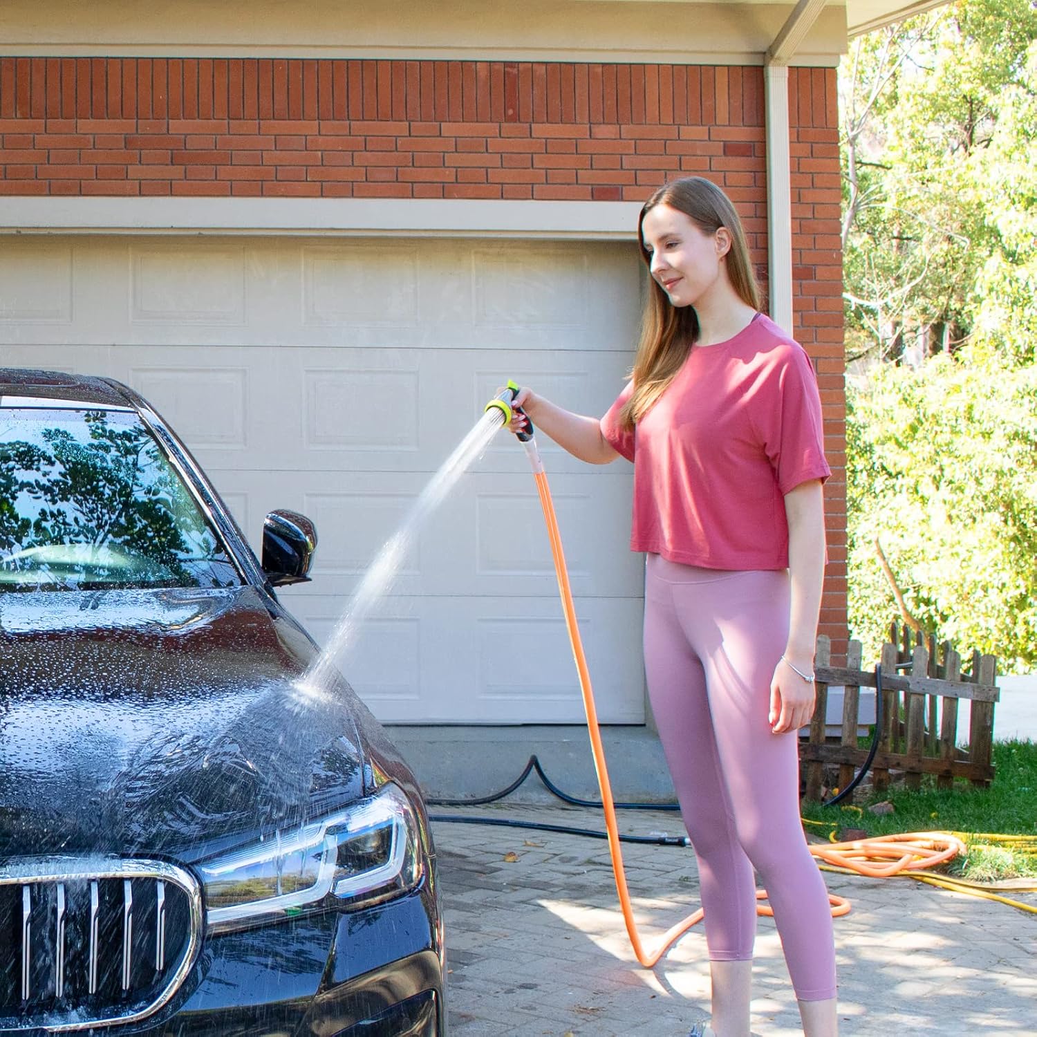 • Lightweight: This hybrid polymer hose is significantly lighter than traditional heavy rubber hoses. This makes it much easier to carry around the yard, drag across the lawn, and store away without strain