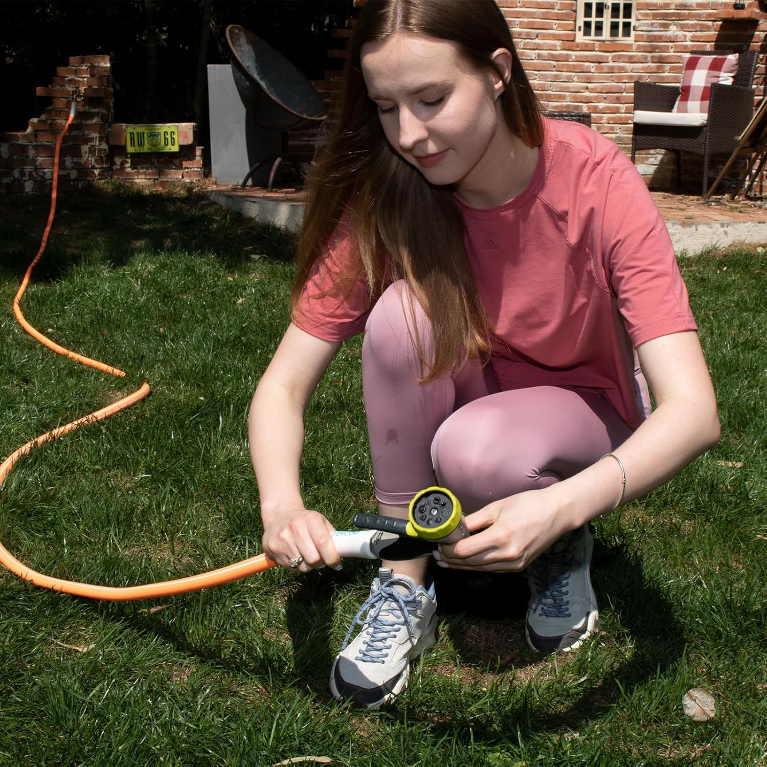• Lightweight: This hybrid polymer hose is significantly lighter than traditional heavy rubber hoses. This makes it much easier to carry around the yard, drag across the lawn, and store away without strain