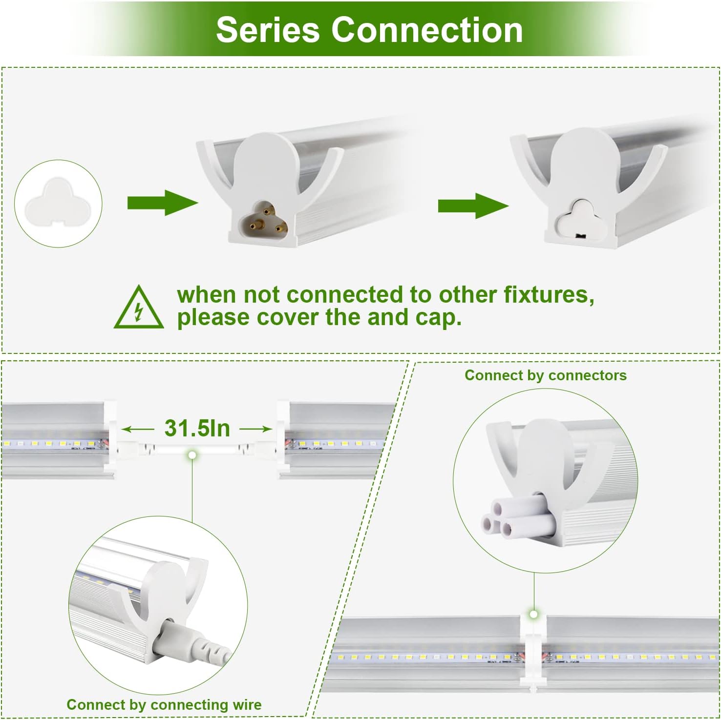 • EASY INSTALLATION: Light kit including tapes, clips and cable ties, you could install the lights by yourself in minutes. Could connect up to 8 tube lights together with seamless connectors or connector cords by end-to-end design. The hanging growing lights have ON/OFF switch,can be Plug and Play. saving your installation cost and time.