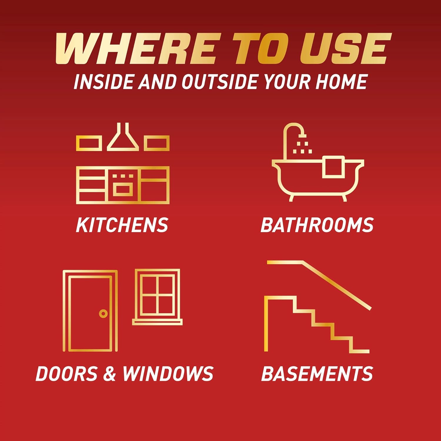 • Use indoors in kitchens, bathrooms, doors, windows and basements, and outdoors around the perimeter of foundations, patios, decks, garages