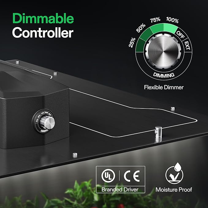 • Dimmable Ballast: This LED plant lamp has a dimming knob with 4 levels that can be used from sprouting to flowering; ​Designed with the daisy chain function (EXT) that allows you to connect multiple lights with 1 socket