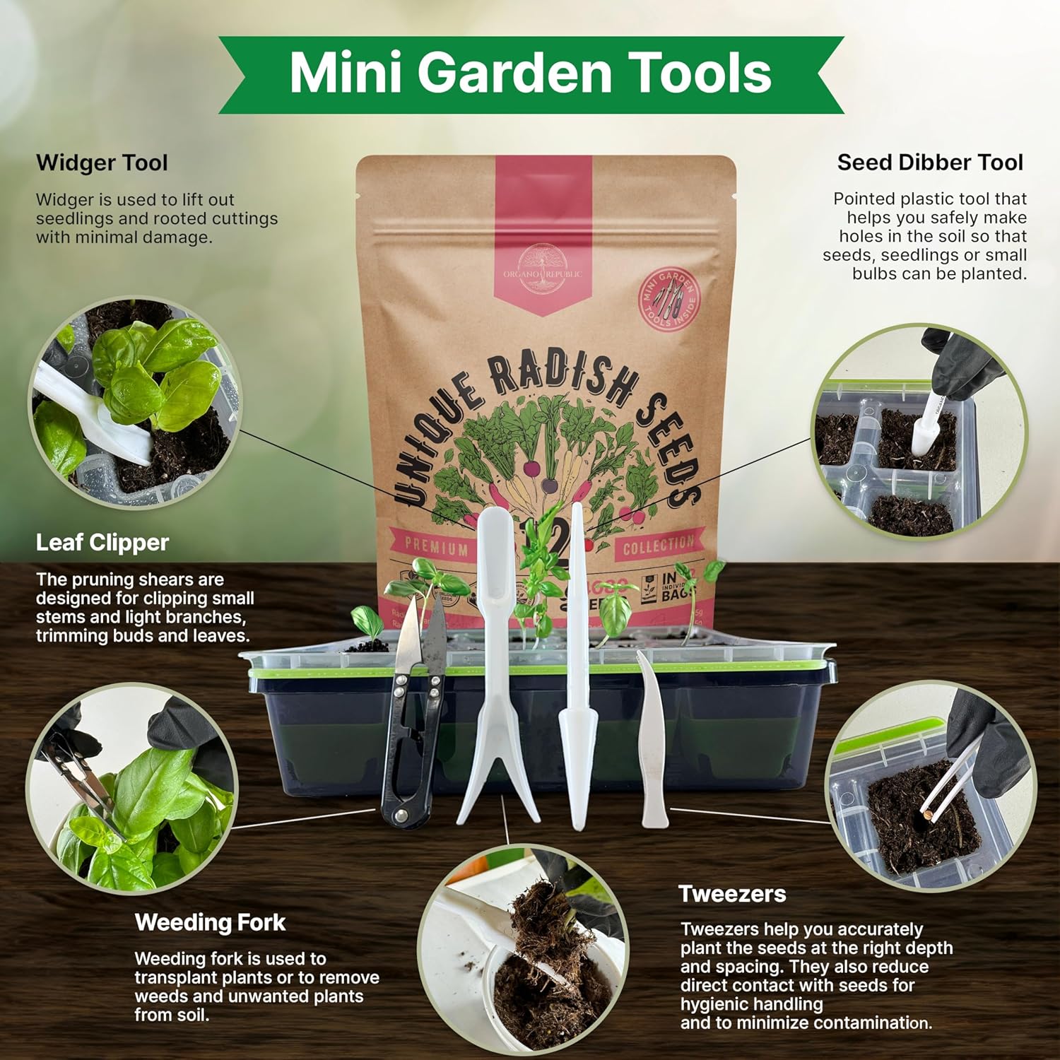 • 🏡 Fresh Radish from Seeds to Your Table All Year Round. Grow radishes from seeds everywhere - Indoor in aerogarden, window, and hydroponics garden or transfer them to your Outdoor Home Garden. Our radish seeds for planting are also suitable for Microgreens and Sproutings. Grow your seeds and enjoy healthy meals with the help of our cooking guide.