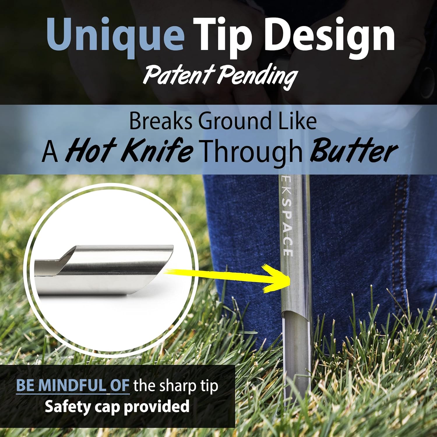 • ๐Ÿƒ Like A Hot Knife Through Butter: Check out the unique tip on this Lawn Probe, it's designed to break through lawn soil effortlessly! Simply swivel the soil probe as you break ground to loosen soil, then keep turning its rod to max depth without it bending! Itโ€™s sharp, so we give you a safety cap, too.