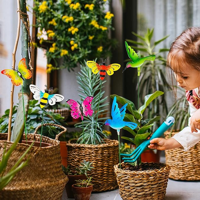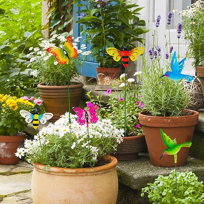 • 6 Pack Metal Garden Stakes: Our outdoor cute yard decorative stakes include 2 butterflies(yellow and pink), 2 hummingbirds(green and blue), 2 bees(yellow and white). Place them in your garden, yard or anywhere you want, they will bring more refreshing feel of nature.