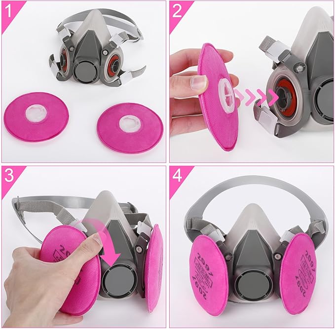 • 【Application】Half face cover set can effectively block organic vapor/gas, oily smoke, pollen, dust and other particles in the air. It is widely used in paints, chemicals, polishes, pesticide spraying, chemical experiments, automobile maintenance, and welding.