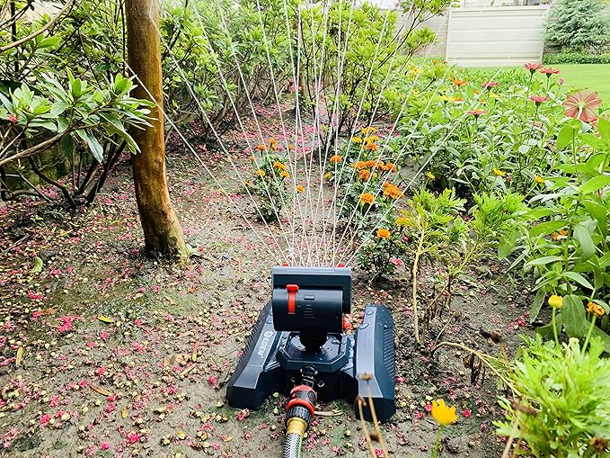 • Flexible four-way adjustments (width, length, water flow, and 360-degree angle) provide precision watering right where it is needed. Effectively water narrow areas between buildings, sidewalks, and driveways, or large areas such as lawns, gardens, and other greenery.