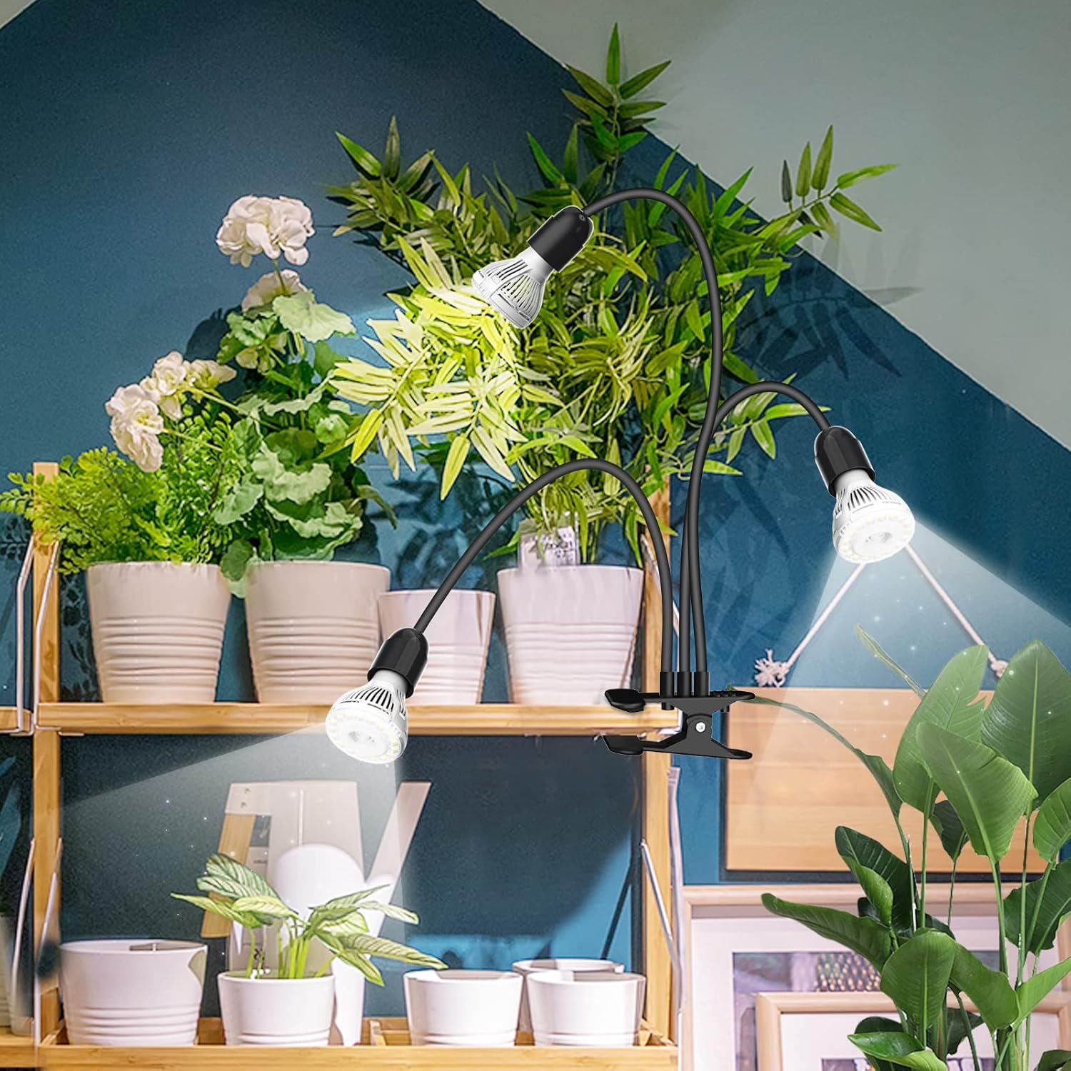 SANSI LED Grow Lights for Indoor Plants, 450W Full Spectrum 3-Head Gooseneck Grow Lamp with Ceramic Tech., 30W Power Clip-on High PPFD Plant Light with Optical Lens, Lifetime Free Bulb Replacement